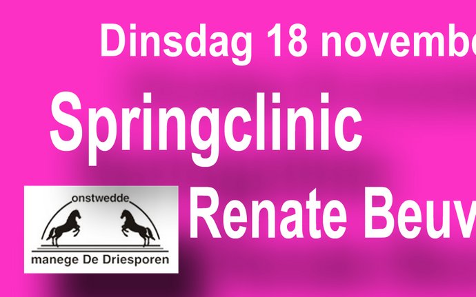 Op 18 november geeft Renate Beuving een indoor springclinic. De lessen starten om 18.30 uur en duren maximaal drie uur. Er wordt gereden in groepen…