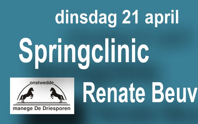 Springclinics met Renate Beuving georganiseerd door de Paardensportvereniging De Driesporen. Lestijden: 18.30 tot 19.30 uur 19.30 tot 20.30 uur 20.30…