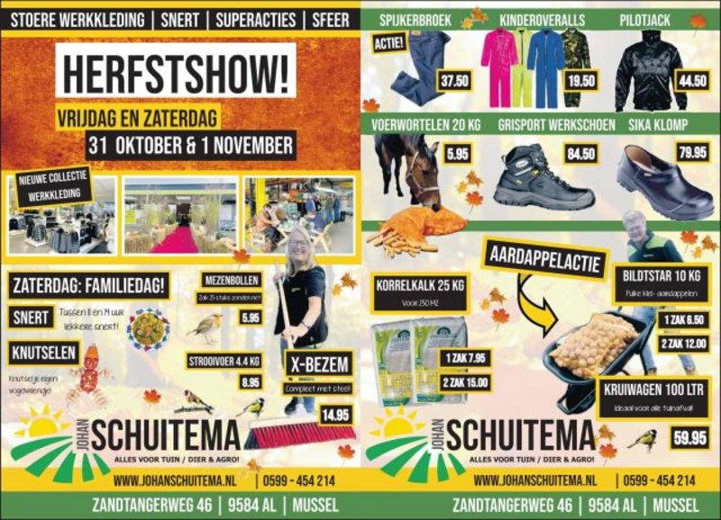 Komend weekend organiseren wij onze jaarlijkse herfstshow. Tijdens deze show kunt u profiteren van leuke acties, de nieuwe collectie (werk)kleding bewonderen en genieten (op zaterdag) van heerlijke snert!