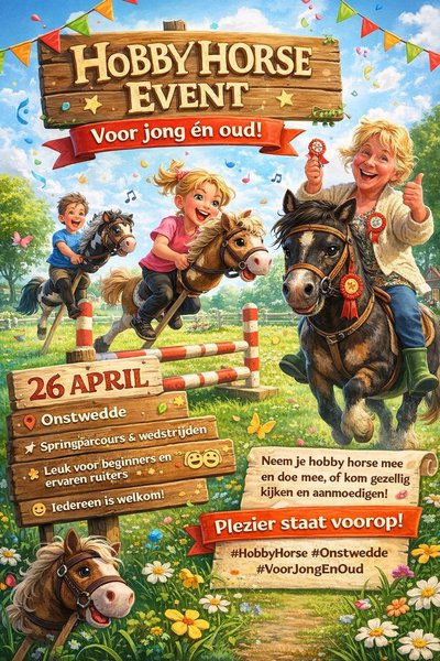 Hobby Horse & Barrelrace op zondag 26 april bij Manege De Driesporen in Onstwedde.