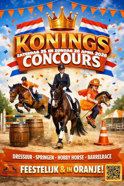 Tijdens het Koningsdagconcours op 25 en 26 april bij manege De Driesporen staat alles in het teken van de paardensport.