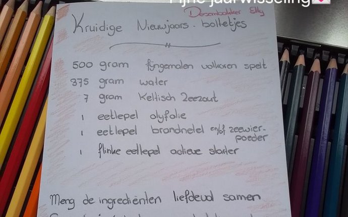 Dat je mooiste dromen uit mogen komen..... Fijne jaarwisseling. Op de foto een recept voor het bakken van Kruidige Nieuwjaarsbolletjes. Desembakker…