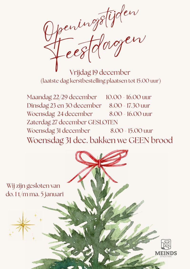 Let op: Vijdag 19 december is de laatste dag om kerstbestellingen te plaatsen: to 15.00 uur.