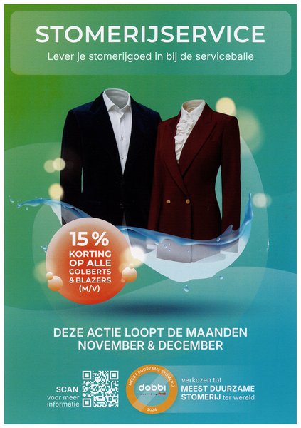 Lever je stomerijgoed in en ontvang 15% korting op alle Colberts en Blazers (m/v).