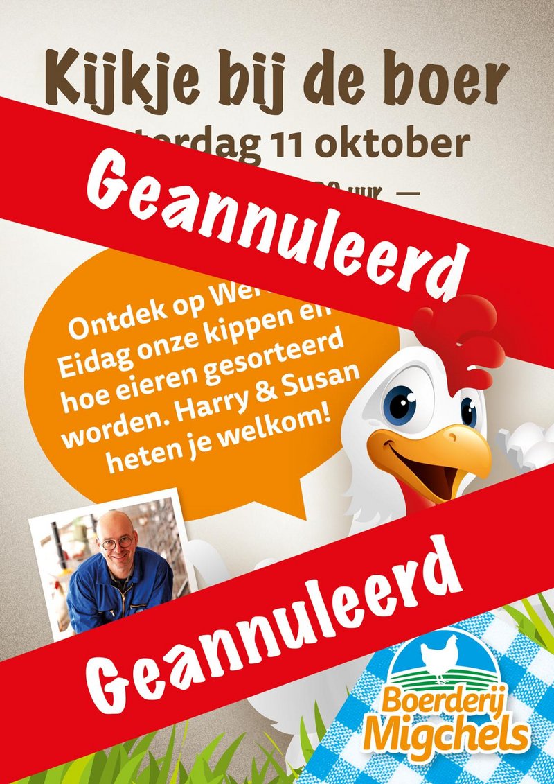 Gaat niet door: Kijkje bij boerderij Migchels op Wereld Eidag op 11 oktober vanwege vogelgriep uitbraak in Gasselternijveensemond.
