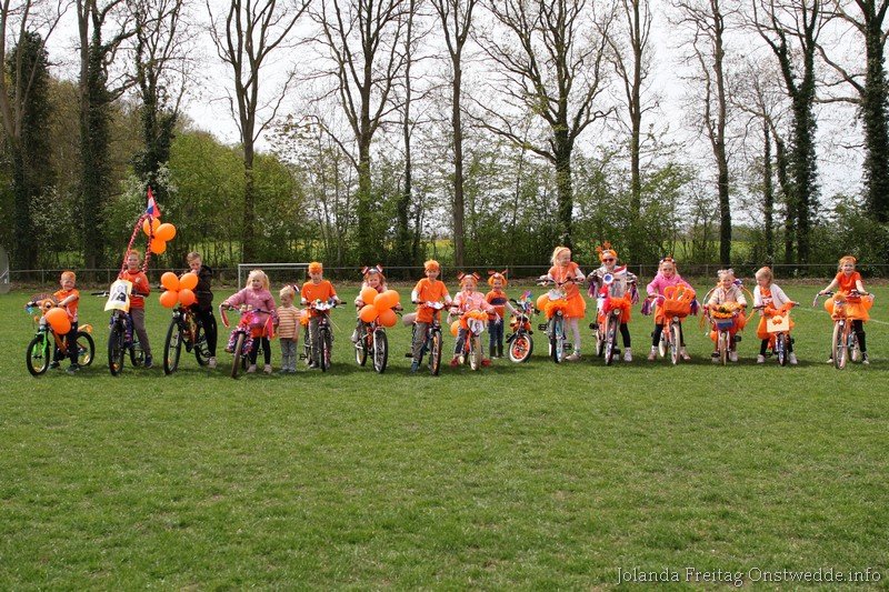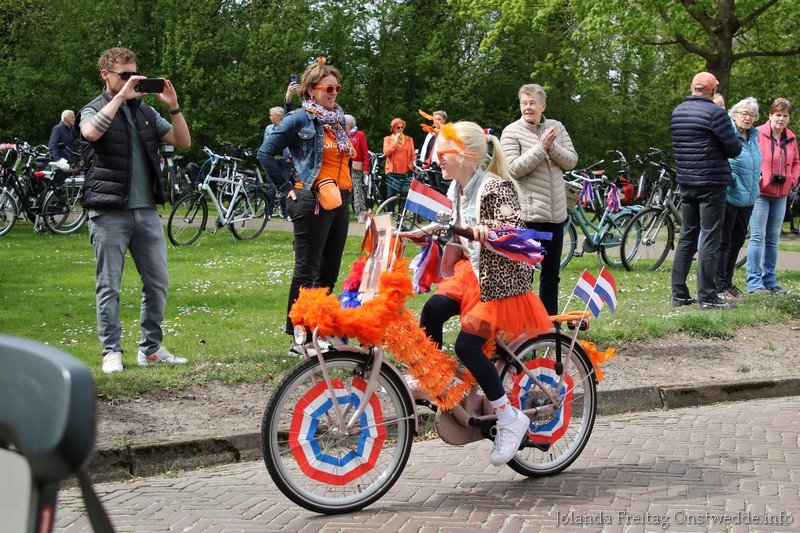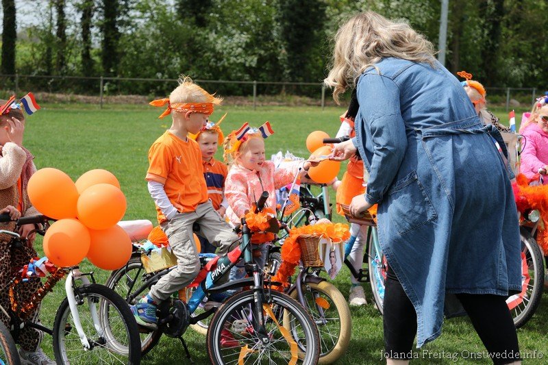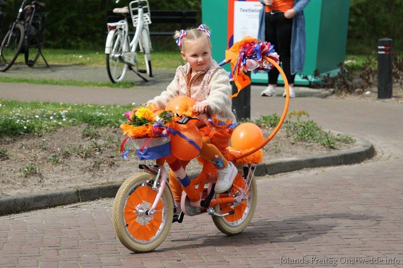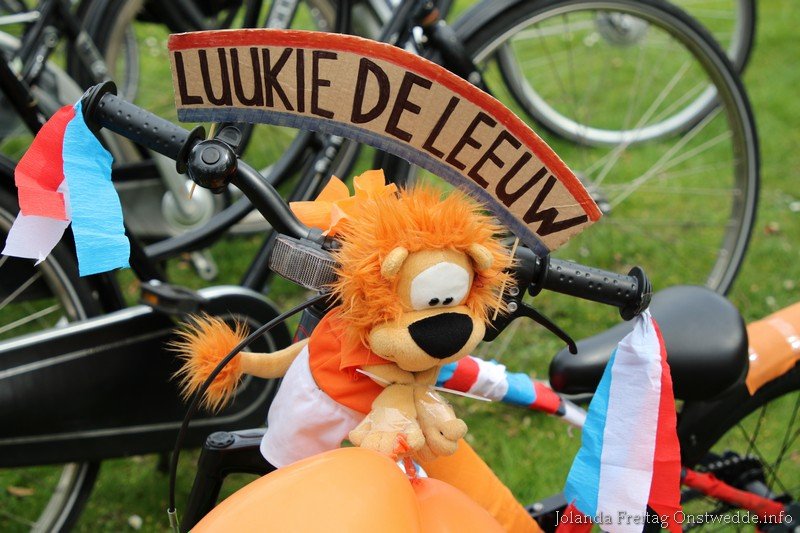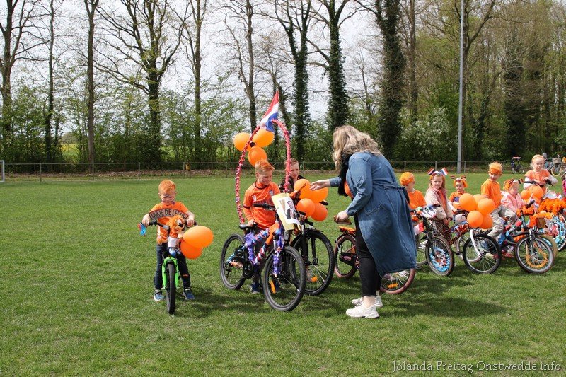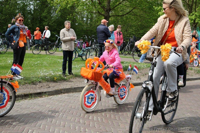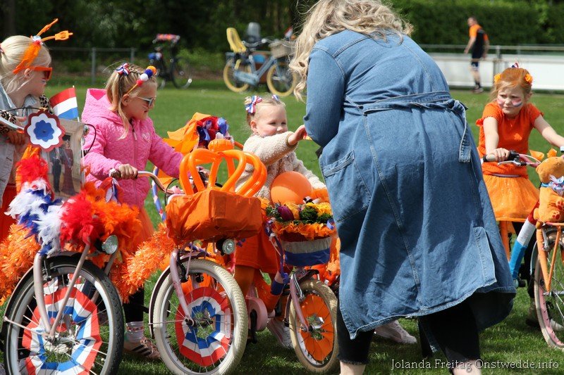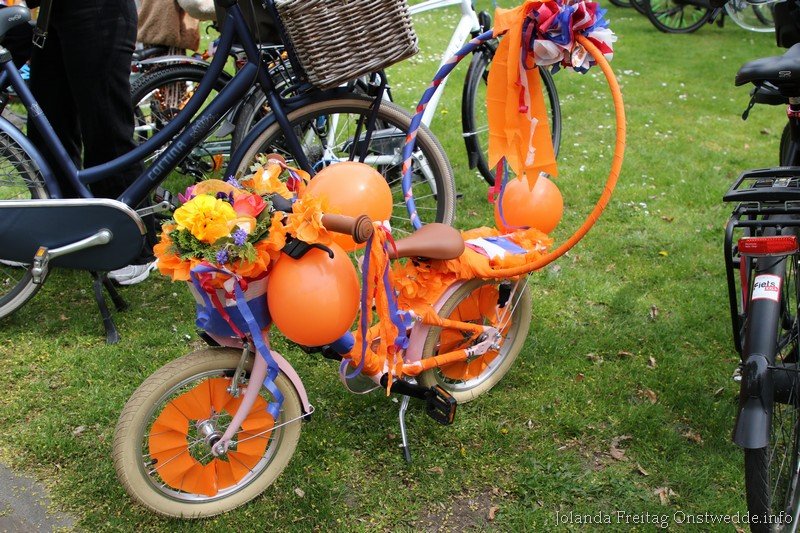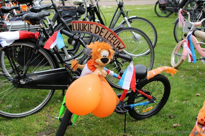 Versierde fietsen tijdens Koningsdag op de Boskamp