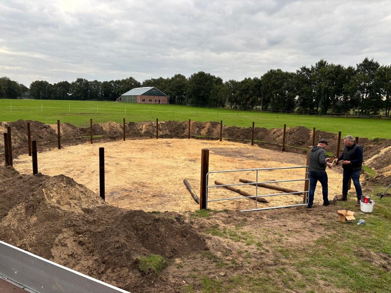 Longeercirkel in aanbouw manege De Driesporen