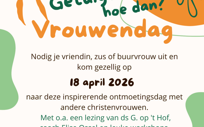 Beste vrouwen uit Onstwedde en omstreken, Op D.V. 18 april houden we opnieuw een Vrouwendag in d'Ekkelkaamp. Deze dag zal in het teken staan van…