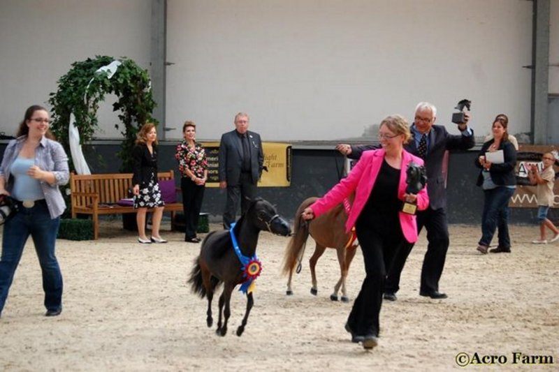 Ze hebben overigens niet altijd minipaarden gefokt. Ze zijn juist groot begonnen, met het fokken van dressuurpaarden, vervolgens overgestapt naar welshpony´s en uiteindelijk met nog een maatje kleiner belandt bij de minipaarden. Inmiddels hebben ze er alweer vijftien en is er één onderweg.