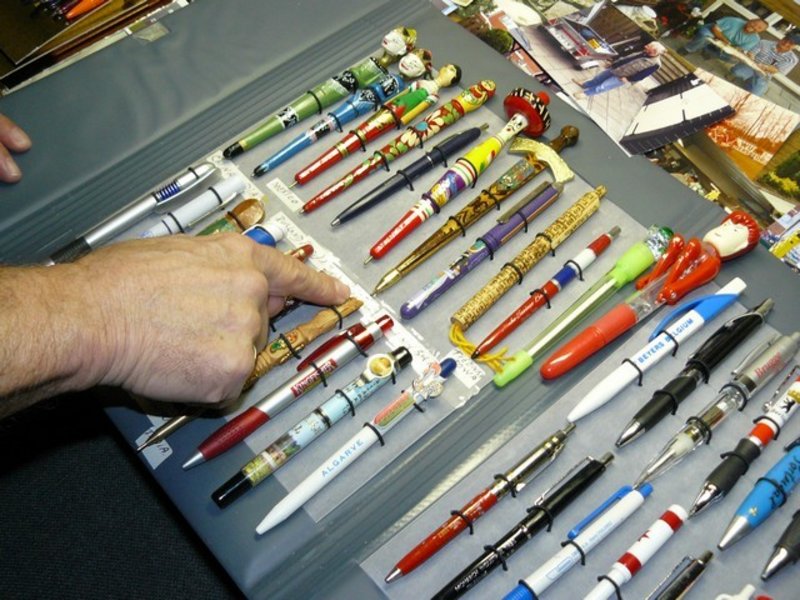 Ondanks de enorme hoeveelheid pennen die hij inmiddels heeft verzameld, weet hij toch precies welke pennen hij wel en niet heeft. Dit wordt bewezen door de grote bakken vol met pennen die hij dubbel heeft, om ze misschien nog een keer te kunnen ruilen.