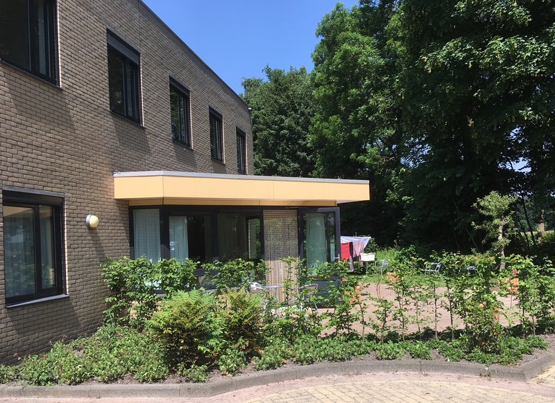 Na het interview krijg ik een rondleiding door het huis. Het hospice heeft 3 kamers voor de gasten met een eigen badkamer met aangepast sanitair. De kamers zijn modern gemeubileerd, maar de mogelijkheid bestaat om eigen meubilair mee te nemen. Er is een grote huiskamer met een zithoek en een grote tafel met zes stoelen. De serre in de huiskamer biedt uitzicht op de tuin en het terras. Met het mooie weer van vandaag staan de tuindeuren open. Er is een open keuken met koelkast en koffie- en thee voorzieningen.