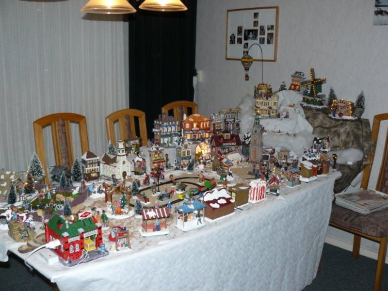 Toch zijn er in ons dorp ook een paar mensen die toch net iets meer met kerst hebben dan anderen. Van horen zeggen weten we namelijk dat bij Luktje Tipker in de woonkamer sinds een paar jaar een heus mini-kerst-dorp tevoorschijn wordt getoverd. Wat op het dressoir begon, is inmiddels zo uitgegroeid dat de eettafel eraan moest geloven: marktkraampjes met allerlei lekkernijen, een boerderij met allemaal dieren eromheen, een treinspoortje met rijdend treintje in het midden, en een draaiorgel met muziek erin en zelfs voor de bed en breakfast kun je bij Geert en Luktje op tafel terecht. Hoewel ze het eigenlijk nog maar drie jaar doet heeft ze toch via markplaats, de blokker en Denekamp al heel wat dingen bij elkaar gespaard, en zo ook één van haar mooiste aanwinsten: de Martini toren. Ze is er toch wel een paar avondjes zoet mee om de hele boel op te bouwen, waarmee ze net iets na de verjaardag van Geert in november mee begint: deze hobby neemt zoveel ruimte in beslag dat anders namelijk de visite er niet meer bij inpast. Na Nieuwjaar is het gebeurt met het dorpje en al haar special effects, en dan gaat alles weer in de dozen de zolder op. Als we een andere hobby van Luktje in de gaten krijgen, worden we eraan herinnerd dat we deze avond nog een andere afspraak hebben staan…