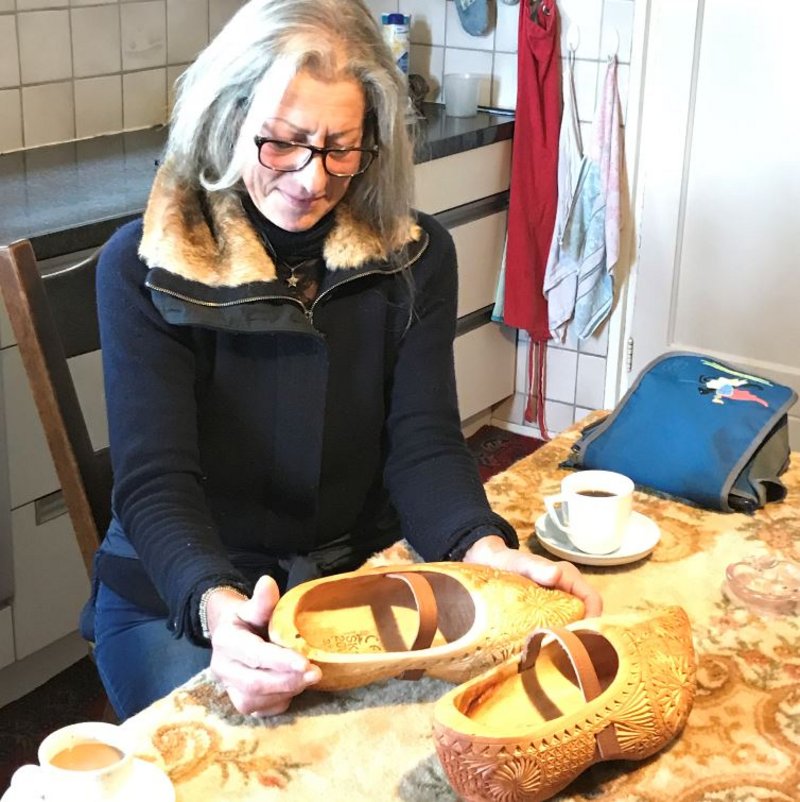 Maar dat bleek toch anders te lopen. Twee weken later wordt ze gebeld door de campinghoudster van Ameland. Of deze met de Italiaanse bij haar langs kan komen? De klompen zijn inmiddels aangeschaft en staan klaar om gesneden te worden.