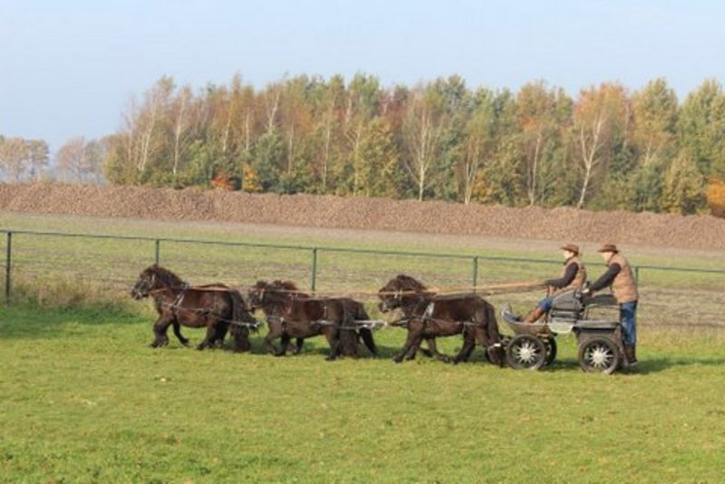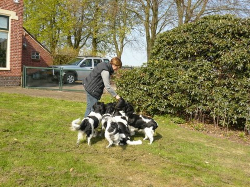 Naast shetlanders lopen er nu vooral veel honden op het erf. Marianne en Hans zijn nadat ze in een half jaar tijd het hele huis hadden verbouwd, begonnen met de bouw van een hondenpension. Op het moment dat wij hun bezochten hadden ze wel veertien logeetjes, naast hun eigen zes honden van hun favoriete ras; de friese stabij. De dieren zijn vooral overdag Marianne’s werk en Hans is werkzaam in de metaalsector. Ze komen oorspronkelijk uit Hillegom en Lisse, waar ze begonnen met één hond, daarna nog één, en nog één, en voor ze het wisten hadden ze ineens een stabijkennel. Echter, hun huis daar moest plaatsmaken voor een snelweg, en na een dagje bij een kennis in Ter Apel te hebben doorgebracht wist Marianne bij thuiskomst Hans precies te vertellen wat ze wou. Vanaf toen zijn ze hele woensdagen naar het noorden afgereisd op zoek naar een mooie boerderij, en zo zijn ze op de Vosseberg terechtgekomen.