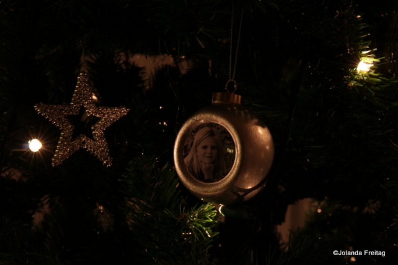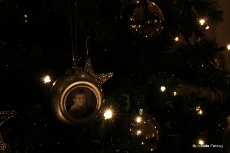 Foto 7 is een enorme Kerstboom aan de Tellingerweg, namelijk die van Harm en Corry Meijer. Het mooie van de versiering in deze boom is dat er kerstballen in hangen met de foto`s erop van hun kleinkinderen (foto's 8 en 9). Er hangen allemaal zilveren ballen in, mat en glans, en zelfs een paar grote discoballen!