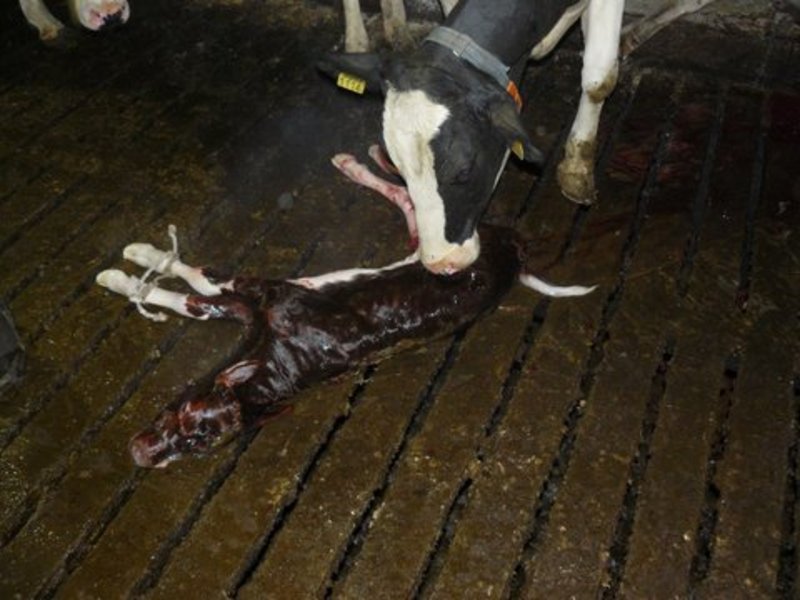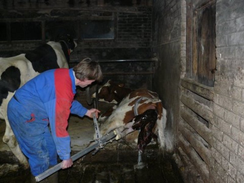 Ronald staat op en neemt nog even een kijkje op stal. Even later gaat de telefoon, want het is zover. Als we in de stal komen zien we het hoofdje al tevoorschijn komen, en binnen een paar seconden is er een stierkalf geboren. Mooi om te zien, en natuurlijk nog mooier om dit voor de site even vast te leggen ….