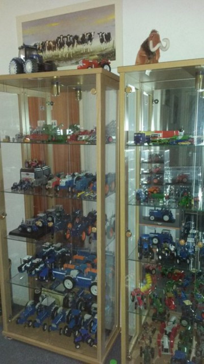 Een andere verzameling prijkt in een vitrinekast in de gang, waar verschillende Ford/New-Holland miniatuur trekkers hun plekje hebben gekregen. Pure hobby, met de verjaardag komt er vaak iets bij. Van de ene verzameling gaan we over op de ander, en dat is een kast vol koeienbeeldjes van het merk Cowparade, welke door Zwanie bijeen gespaard is. Koeien in verschillende soorten en kleuren, allemaal netjes opgesteld en ook weer vaak aangevuld na een verjaardag.