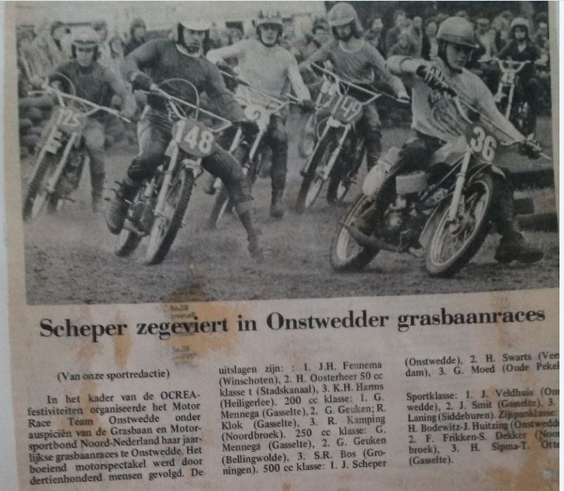 Dan krijgen we het over Jacob z'n trots: de motoren. Direct gaat het over vroeger, toen ze nog crosten op de baan naast de algemene begraafplaats of in de Jabbingelaan. Ware feesten waren dat, het hele dorp kwam kijken bij de zelfgemaakte baan, eerst afgebakend door stropakken, later door autobanden. Één keer per jaar werd er een wedstrijd gehouden en de MRTO werd opgericht. In die tijd gingen Jacob en zijn kameraden de wedstrijden nog achterna, overal gingen ze heen te kijken. Toen echter de fabrieksmachines meer en meer in beeld kwamen raakte de lol er een beetje af. Het werd commercieel, en met eigen opgelapte crossmotoren, wat voor Jacob juist de charme was van het crossen, kwam je niet ver meer.
