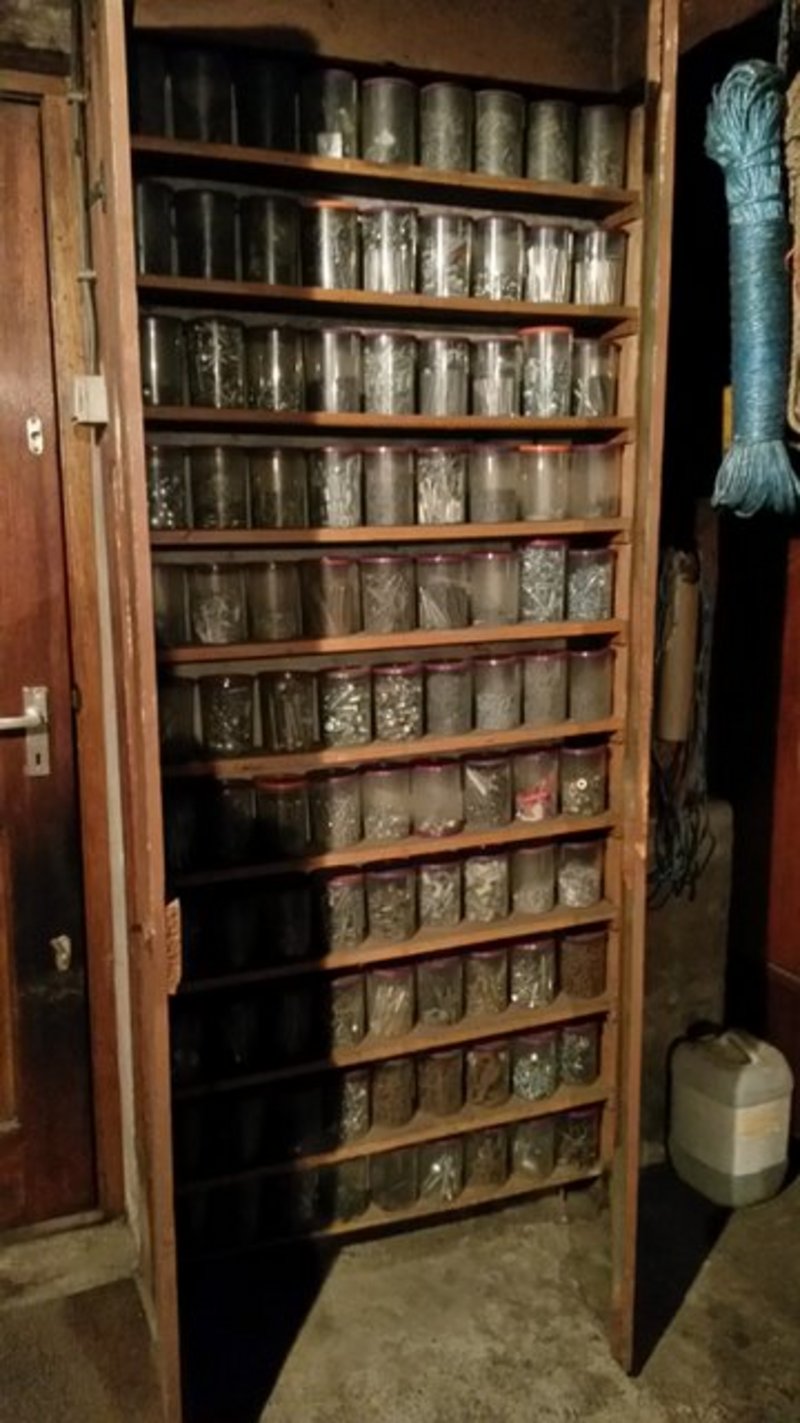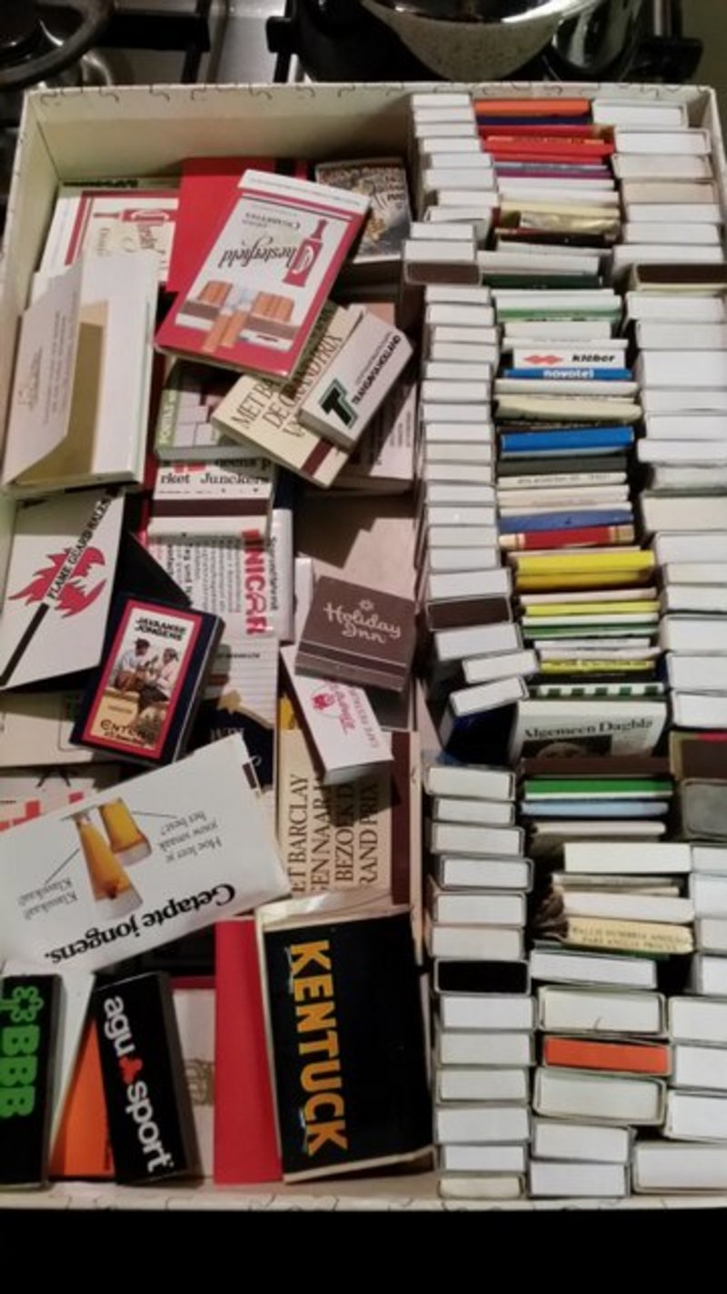 In de keuken had hij ook al het één en ander voor ons klaar gelegd, waar hij ons een aantal van zijn mooiste bijzondere pennen en luciferdoosjes laat zien die hij door de jaren heen heeft gespaard.