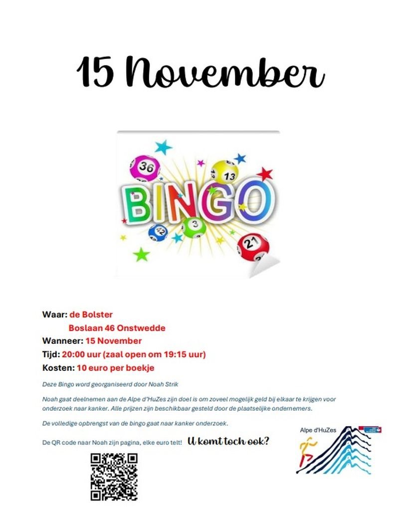 - Bingo georganiseerd door Noah Strik voor kankeronderzoek 15 november