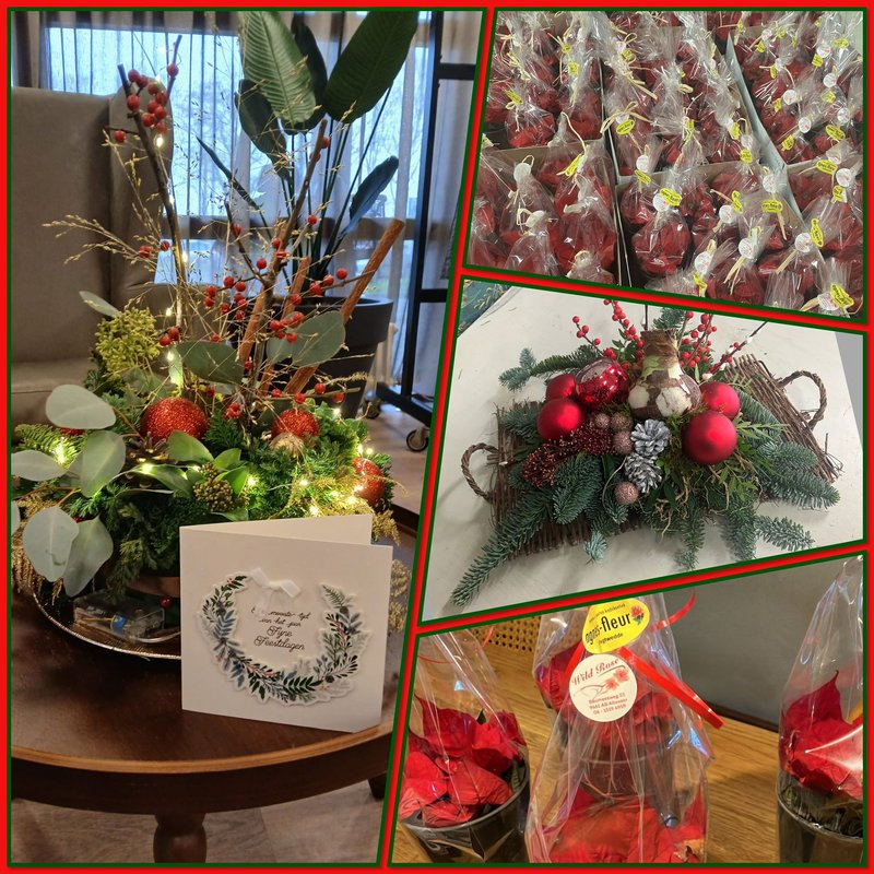 Kerststerren en bloemstukken konden we rondbrengen dankzij de medewerking van Wild Rose in Alteveer en Agnes Fleur in Vlagtwedde.