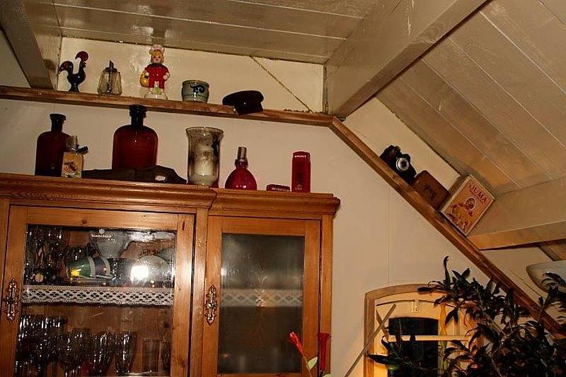 Veel oude attributen, zoals bijvoorbeeld een oude koffiemolen sieren de woonkamer op. Ook ontdekte ik een bord met daarop de tekst: “FIAT 500 PLAZA”. Met daaromheen allerlei miniatuur fiatjes. Vroeger hebben ze heel wat (echte) fiatjes gehad. Op dit moment staat er nog één exemplaar bij hun in de schuur, een Autobianchi Quatroposti uit 1965, genaamd, Lucy.