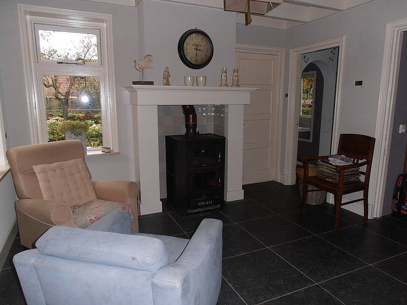 In de afgelopen jaren is er volop geklust in en rond de boerderij. Er was een heel klein keukentje, direct achter de buitendeur, maar die is uitgebreid richting de stal. Nu is het een prachtig ruime woonkeuken, terwijl toch de sfeer van toen er nog hangt met balken aan het plafond en een hoge schouw. Iris verft graag en in Ane Vermaat vonden ze een handige timmerman.