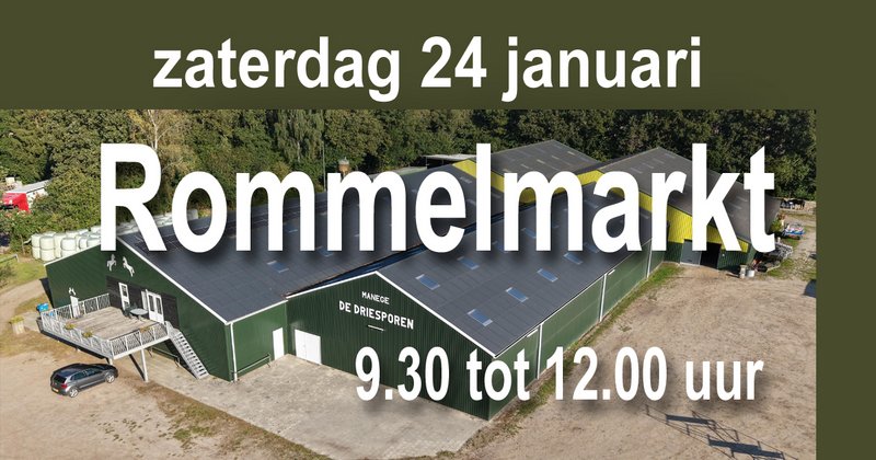 In Manege De Driesporen aan de Wessinghuizerweg 4b in Onstwedde wordt op zaterdag 24 januari de jaarlijkse rommelmarkt gehouden. Bezoekers zijn welkom tussen 9.30 en 12.00 uur.