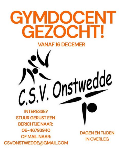 Op 9 december geeft gymclub CSVO Onstwedde voorlopig de laatste les… tenzij jij de club komt versterken!