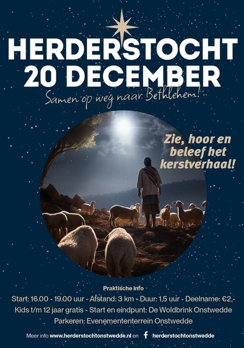 Op zaterdag 20 december 2025 vindt de vierde editie van de Herderstocht in Onstwedde plaats. Jong en oud zijn van harte uitgenodigd om het kerstverhaal van dichtbij te beleven tijdens een sfeervolle wandeling door het dorp.