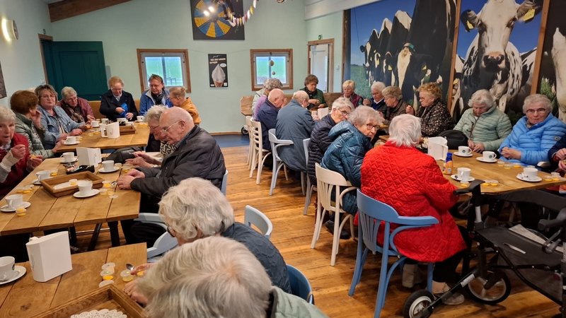 Ze hebben ook een winkeltje (veel zelfbediening). Hier verkopen ze melkproducten, eieren, advocaat en ijs. Ze heeft verschillende smaken advocaat te koop. De advocaat maakt ze zelf. We kregen allemaal 5 smaken om te proeven. We konden advocaat kopen, waar veel gebruik van werd gemaakt. De bus bracht ons weer veilig thuis. Het was een zeer geslaagde middag.
