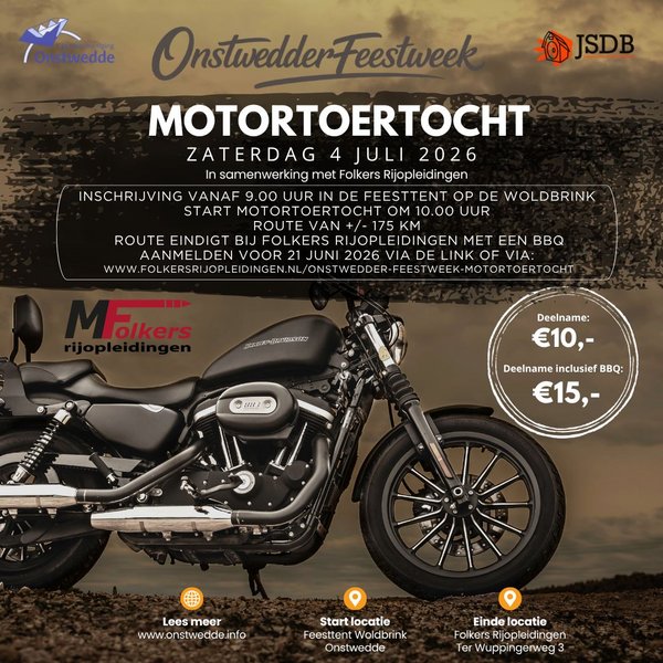 - Motortoertocht tijdens Feestweek Onstwedde op 4 juli