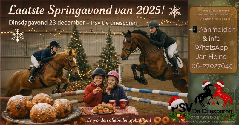 - Oefenspringen en Springlessen dinsdagavond 23 december