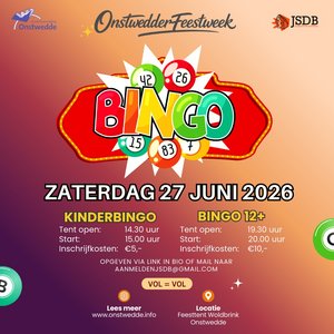 De feestweek Onstwedde wordt op zaterdag 27 juni afgetrapt met een Bingo. Naast een bingoavond is er in de middag een kinderbingo in de feesttent op De Woldbrink.