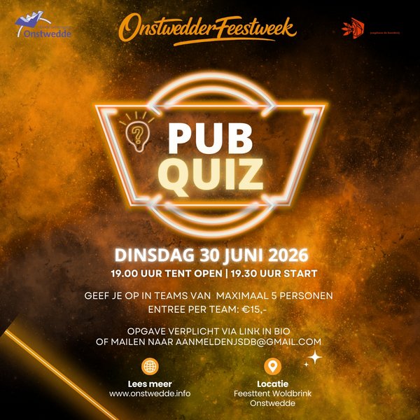 Slimmeriken kunnen ook dit jaar weer laten zien hoe slim ze zijn. Dit jaar is de pubquiz in teams van minimaal 2 en maximaal 5 personen.