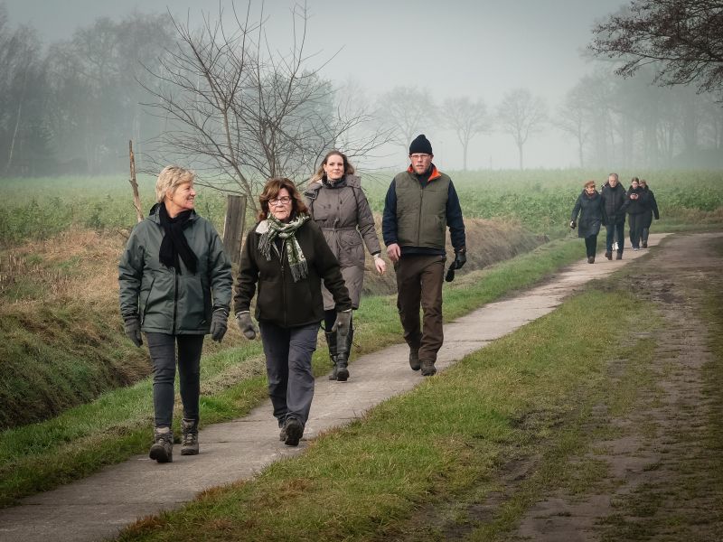 Bij de foto: wandelaars tijdens Rondje Roege Baarg (foto Judith Möller).