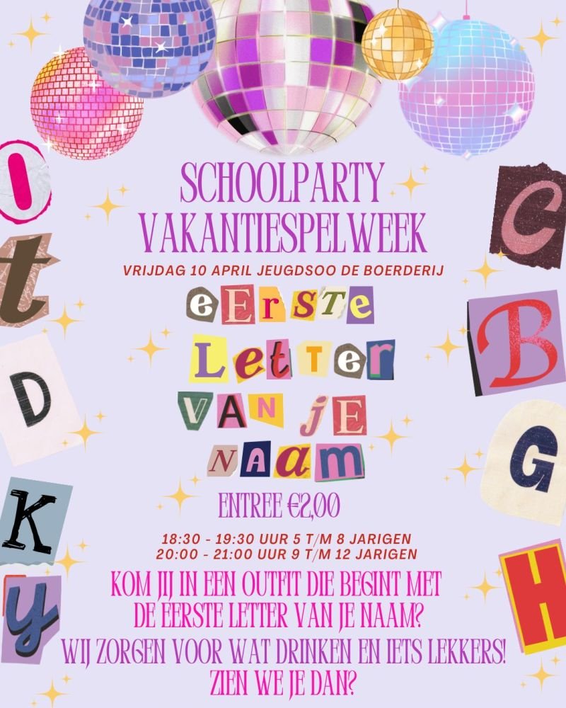 - Schoolparty Vakantiespelweek Onstwedde op 10 april