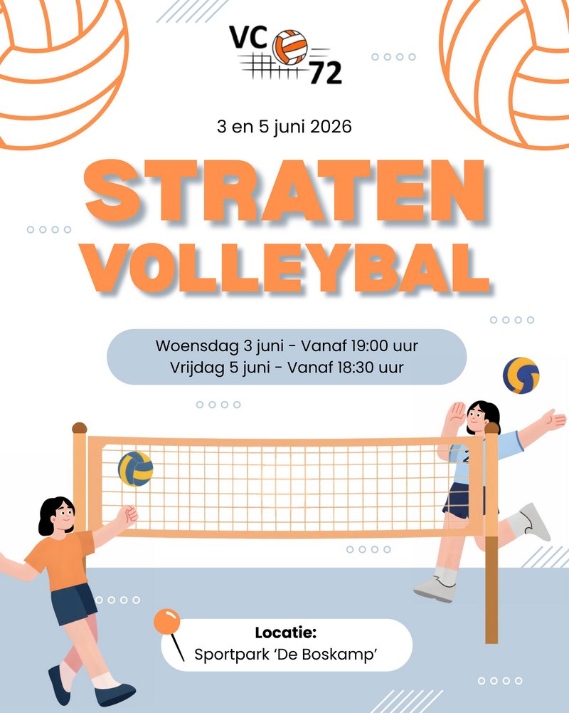 Op 3 en 5 juni wordt weer het stratenvolleybaltoernooi gehouden. Het toernooi vindt plaats op Sportpark De Boskamp en de organisatie is in handen van volleybalvereniging VCO '72.