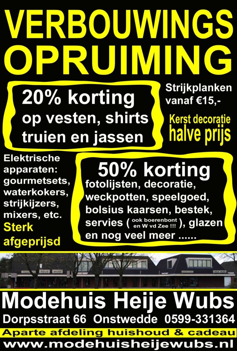 - Verbouwingsopruiming Heije Wubs Mode en Huishoudelijke Artikelen
