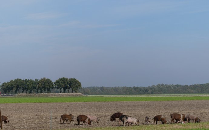 Het Mussel-Aa-kanaal, gezien vanaf Veele met zicht op de Haverlandse brug in Ter Wupping. Foto door H. Wolfs