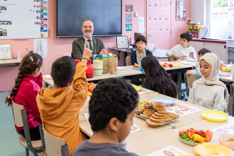 Burgemeester bezoekt OBS Wereldwijs tijdens burgemeestersontbijt
