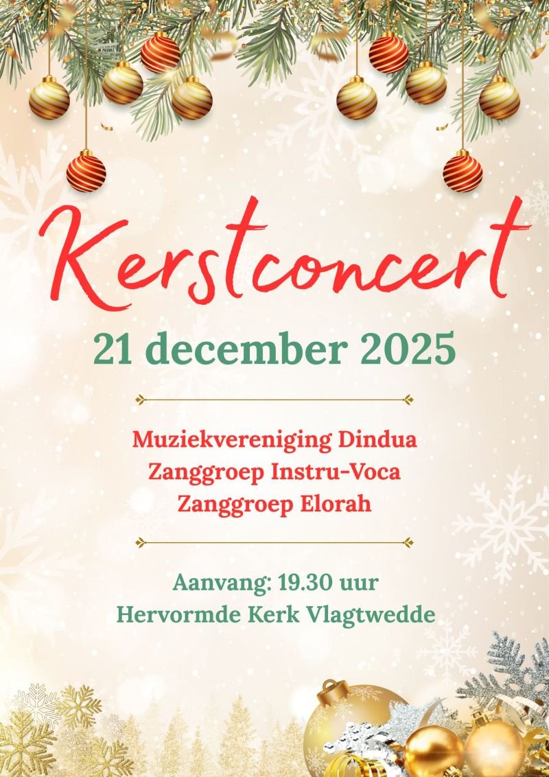 Uitnodiging voor het bijwonen van het jaarlijkse kerstconcert op 21 december 2025 om 19.30 uur in de Hervormde kerk te Vlagtwedde.